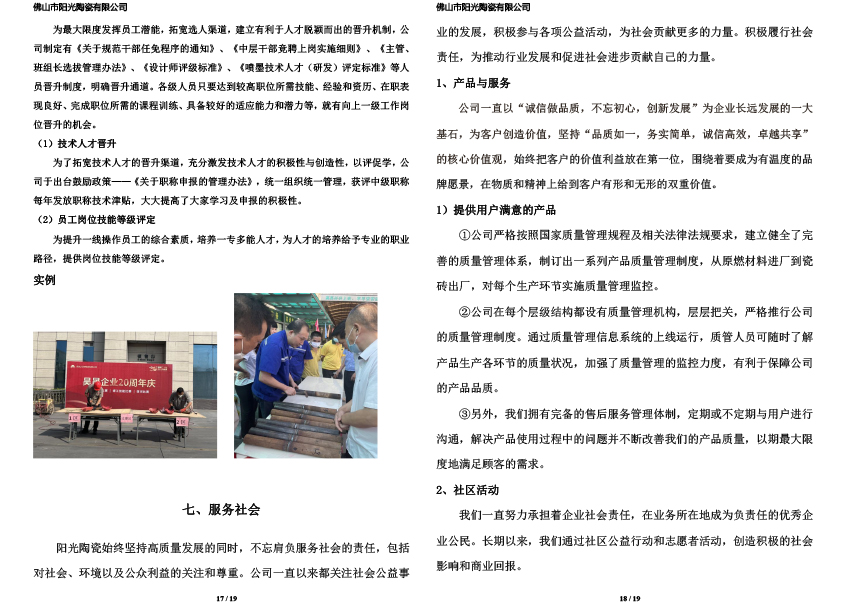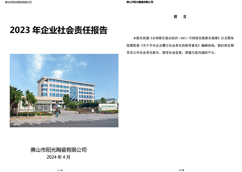 佛山市陽(yáng)光陶瓷有限公司2023年社會(huì)責(zé)任...