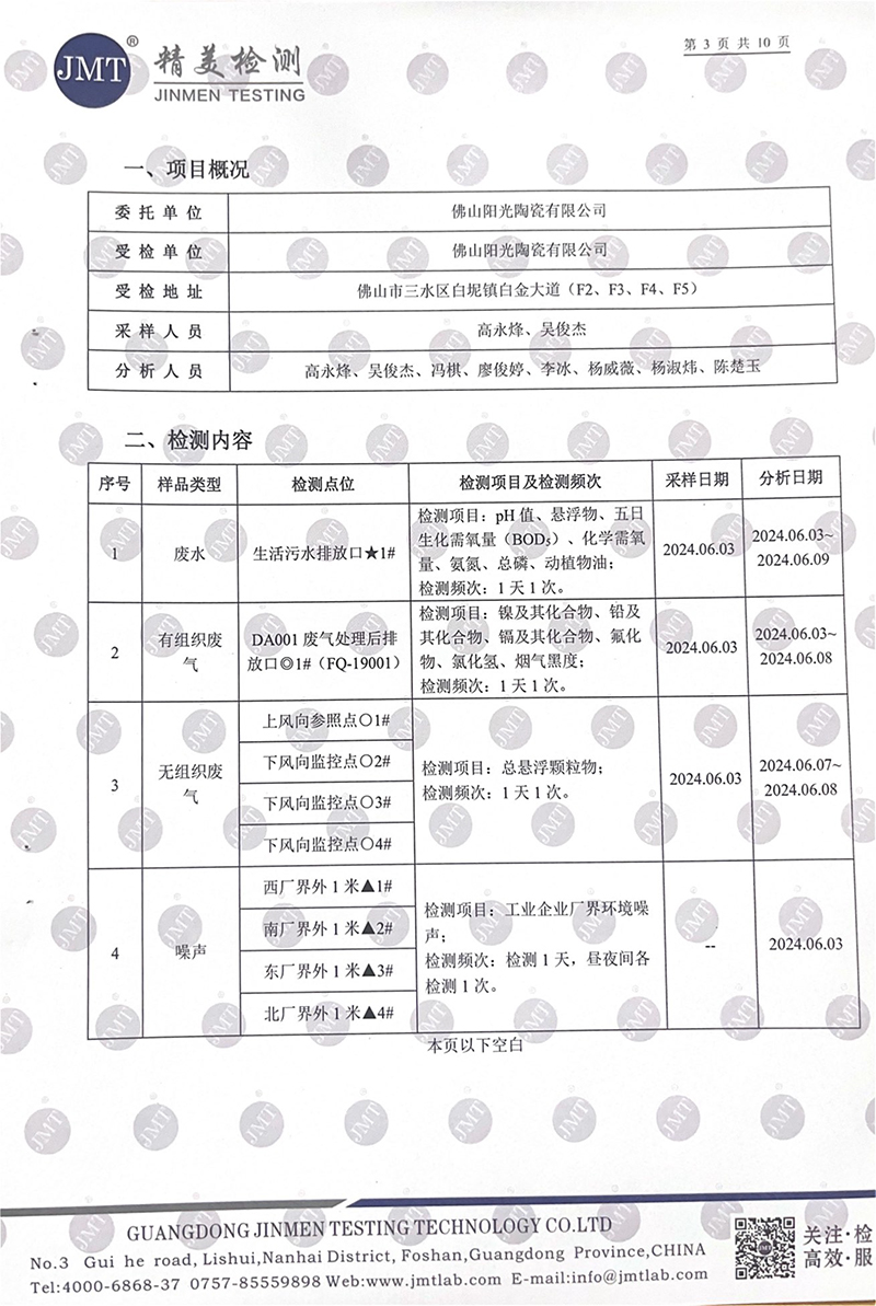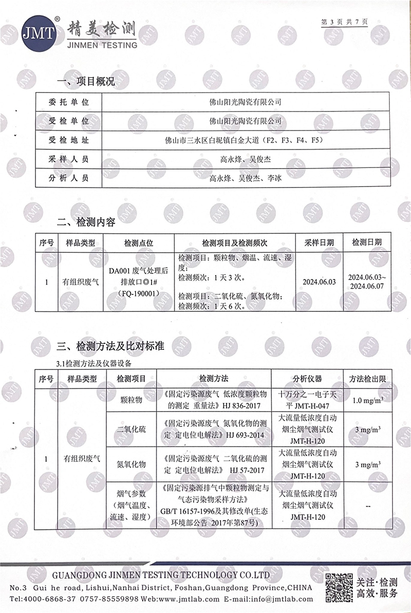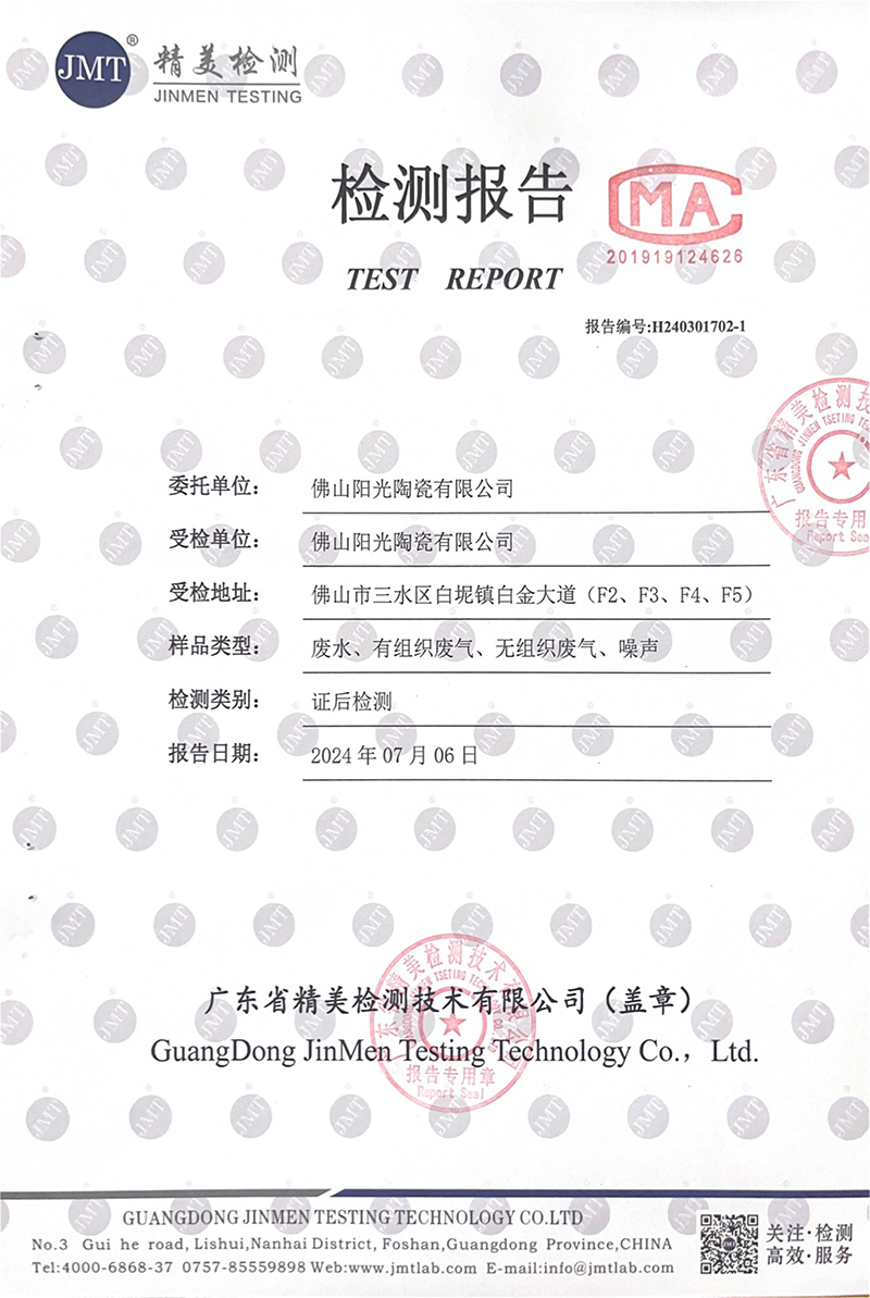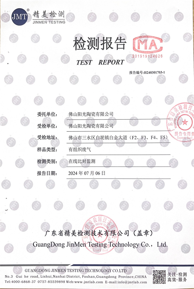 佛山市陽光陶瓷有限公司第二季度監測報告