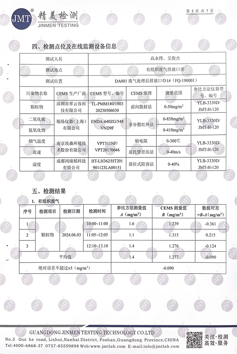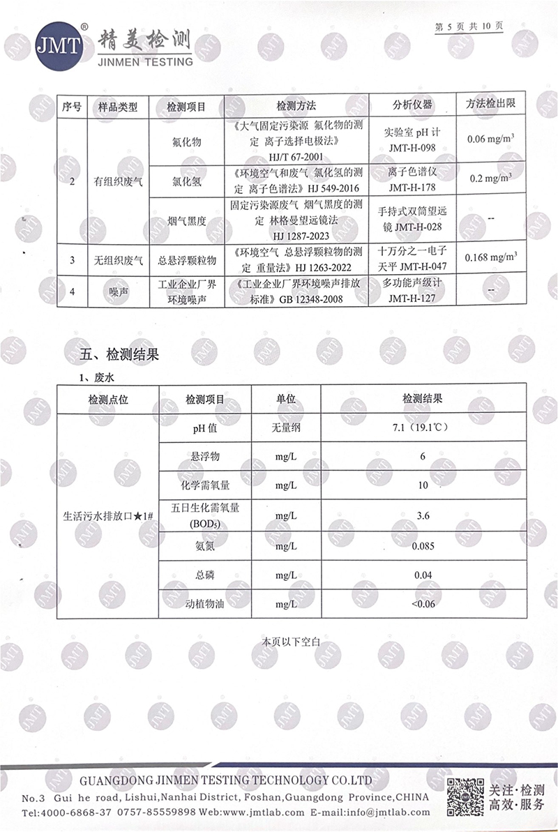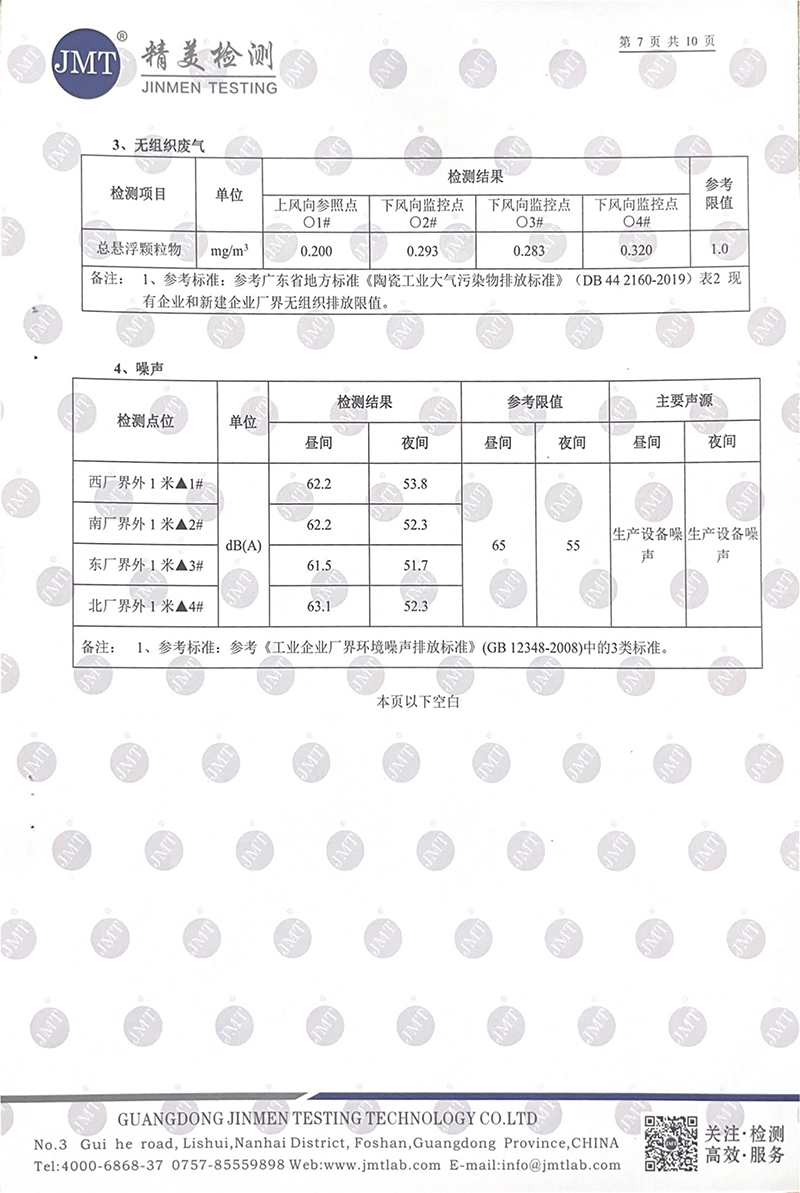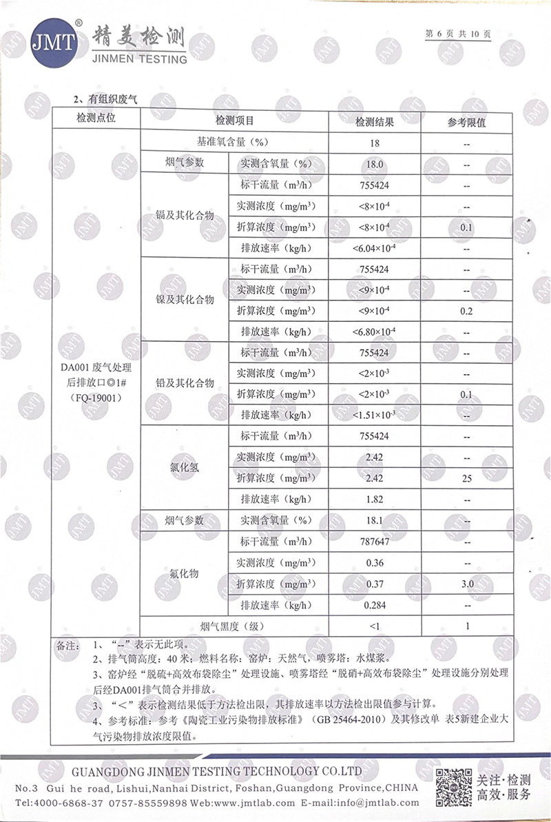 佛山市陽光陶瓷有限公司第二季度監測報告